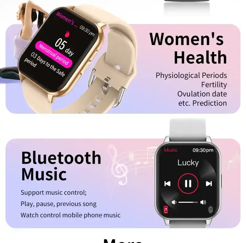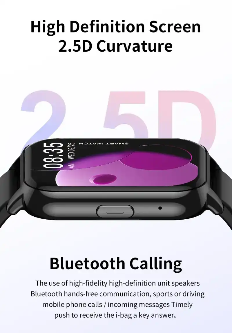 Chip:Jerry 7012(single-coredual-mode,single-connectedwith IOS/Android),five UI menu styles, AI voice assistant, breathing training, dial push, stopwatch, brightness adjustment, multi sport mode, sleep, heart rate, blood pressure, blood oxygen, wallet, business card, information, remote music, remote photography, weather, finding mobile phone (connected to mobile phone), Bluetooth call, Bluetooth music playing, password protection, Calculator, split screen display, shortcut widget, weather, motion trajectory, etc