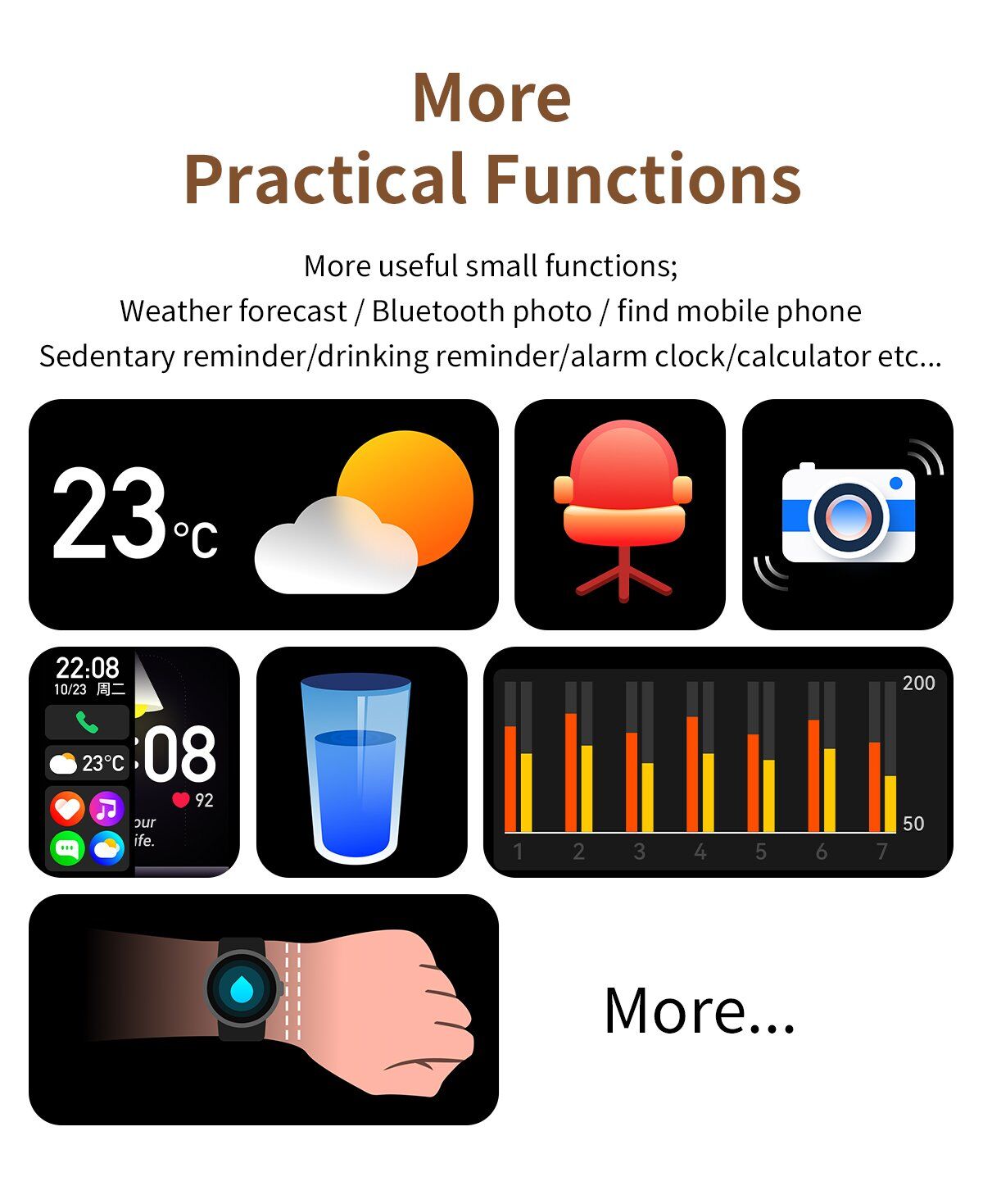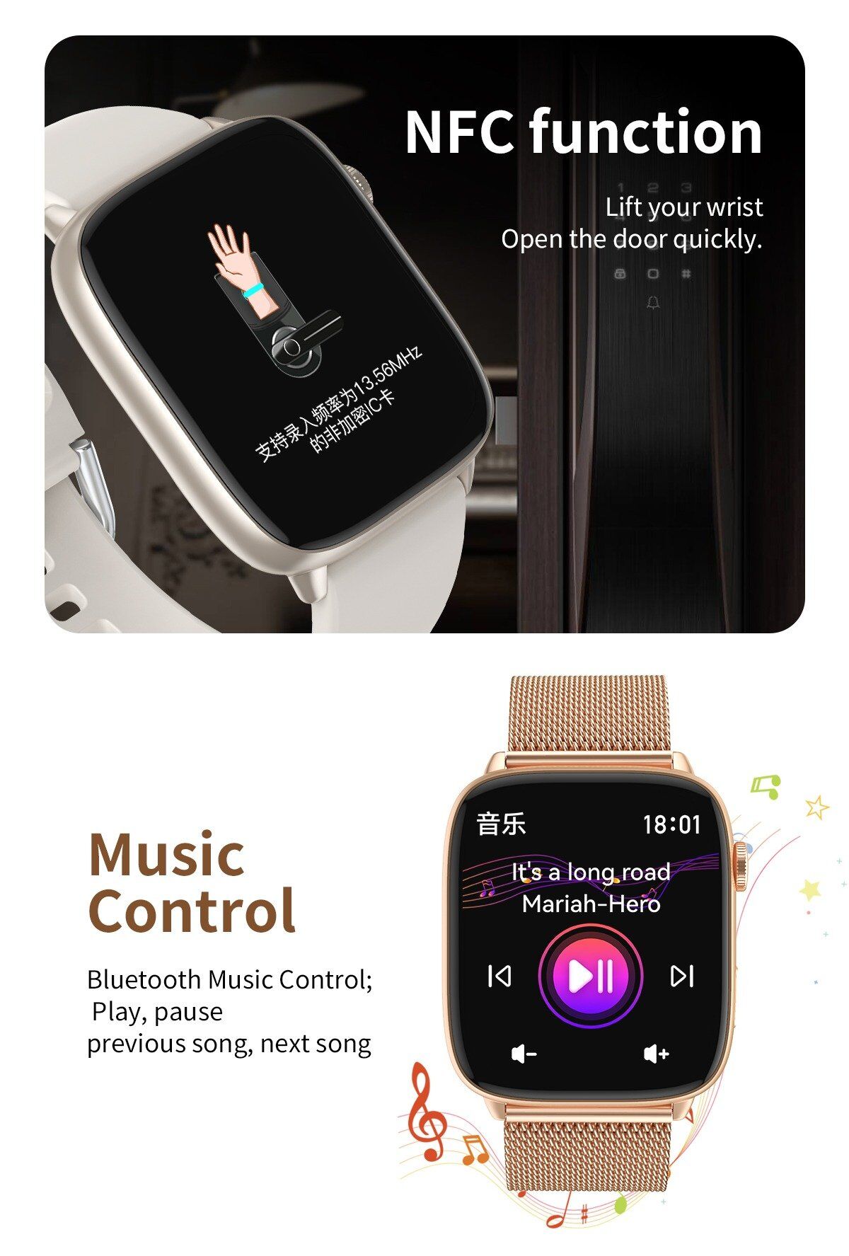 Four UI menu styles, AI voice assistant, offline paypal, breathing training, dial push, stopwatch, brightness adjustment, multi-sport mode, sleep, heart rate, blood pressure, blood oxygen, wallet, business card, information, remote music, remote photo, weather, find cell phone (connected to the phone to use), bluetooth call, bluetooth music playback, password protection, calculator, split-screen display, shortcut widgets, weather, sport Tracks, etc.
