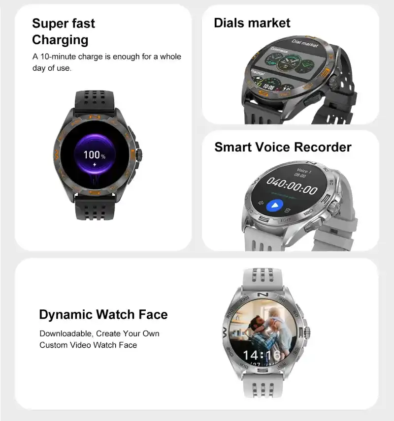 Bluetooth calling, 11 sets of menu styles, support for more than 200 watch faces, breathing training, custom watch faces, stopwatch, brightness adjustment, multi-sport mode, real sleep, real heart rate, information push, remote music, remote photography, real-time weather, find mobile phone (Connected to a mobile phone for use), Bluetooth music playback, password protection, calculator, split-screen display, shortcut widget, weather, female assistant, massager, voice assistant, alarm clock, flashlight, power saving mode, smart and watch mode Choice, one link, explosion-proof glass, compass, multiple games, multiple screen-off clocks, independent ringtones