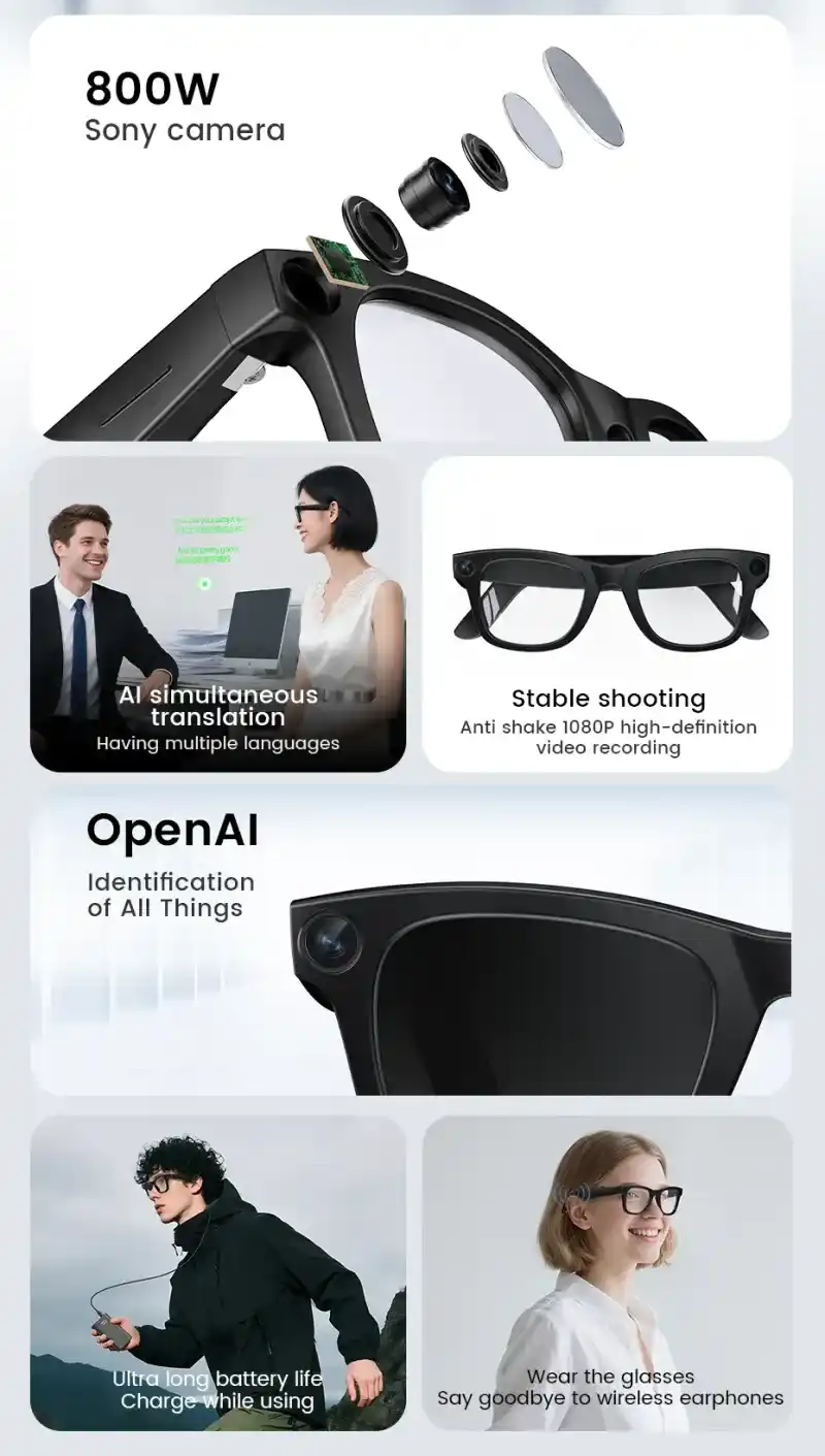 Accessories: Cleaning Cloth, 1 Pair of Anti-Blue Light Lenses, 1 Pair of UV-Protective Black Lenses, Charging Cable, User Manual