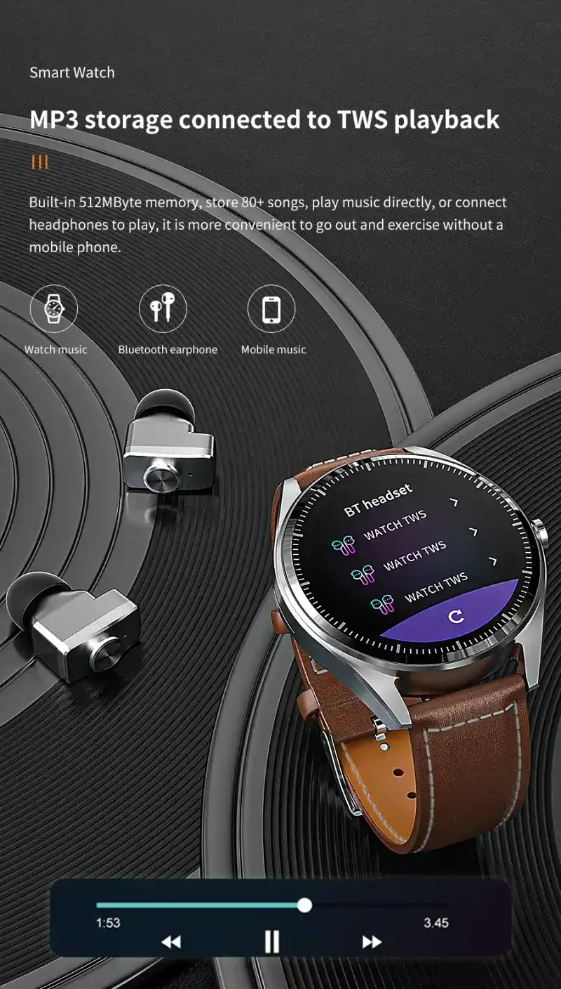 18. **Local Music**: Local music on the watch can be played directly on the watch or via connected TWS earbuds.
