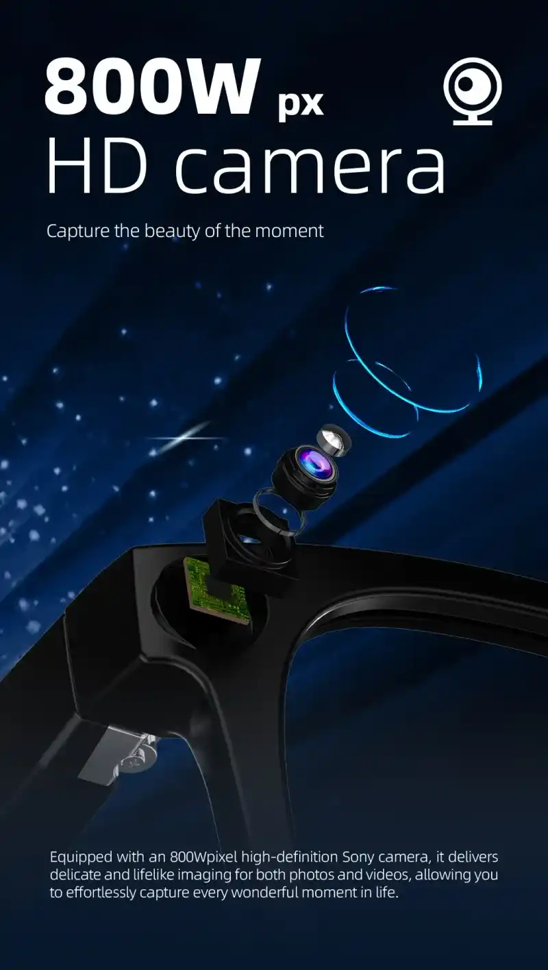 The G300 AI Shooting Glasses are designed for global SMB buyers such as distributors, wholesalers, trading companies, retailers, and cross-border eCommerce sellers. This wearable smart device integrates high-definition video capture, intelligent photography, AI object detection, voice interaction, real-time translation, dual-mic noise reduction, Bluetooth audio, and multilingual operation.