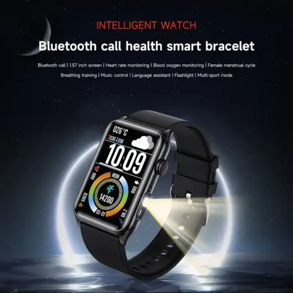 Bluetooth call, A flashlight, non-invasive blood glucose measurement, blood oxygen monitoring, breathing training, Body temperature function,women’s health (menstrual tracking), heart rate monitoring, blood pressure monitoring, sleep monitoring, sedentary reminder and other health functions.
