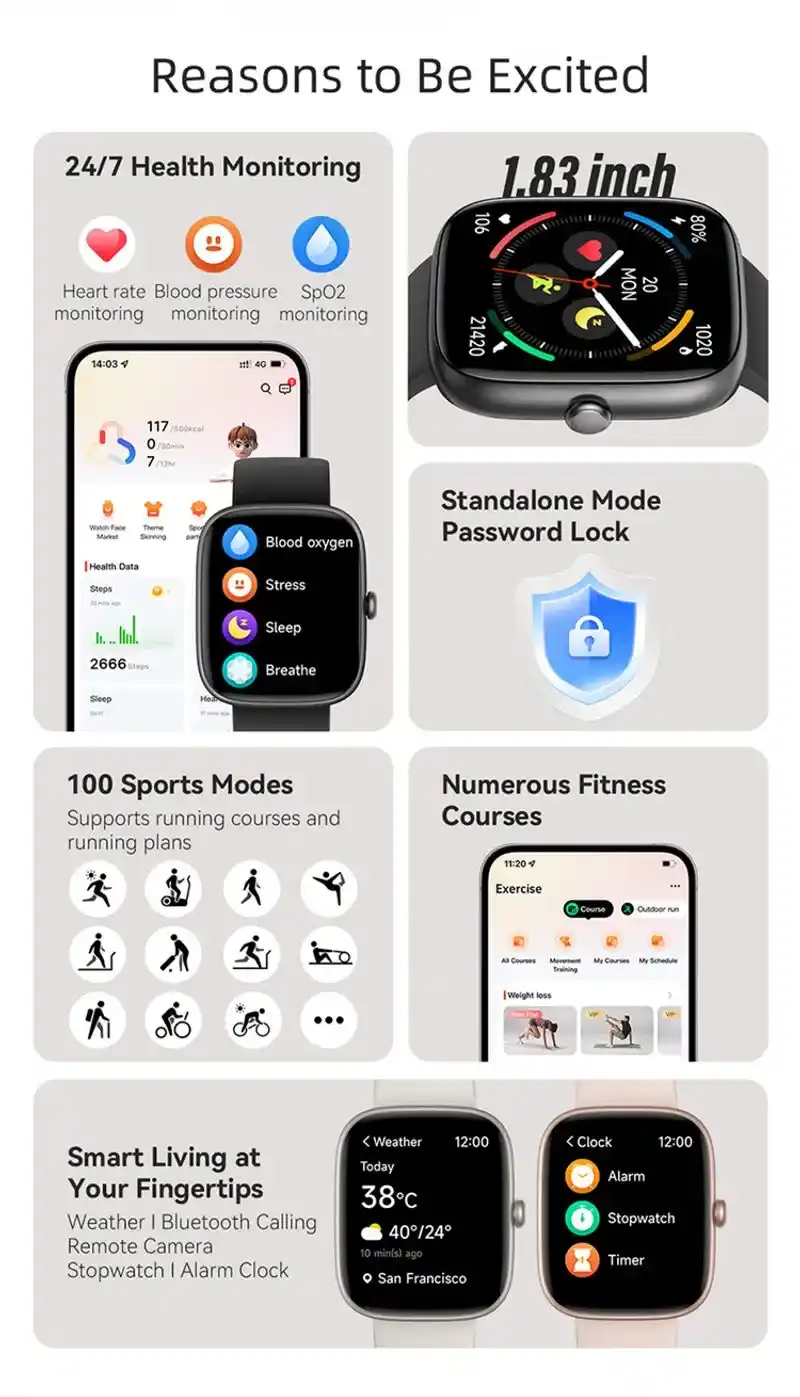 100+ Sports Modes: Supports professional tracking for over 100 activities with auto-recognition features to ensure accurate data capture.
