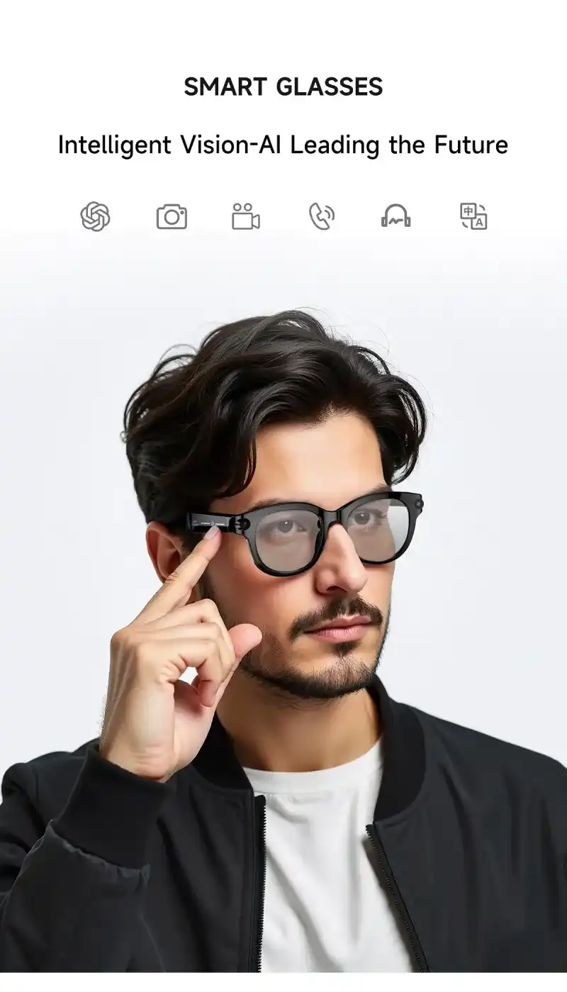 AI voice assistant / Photo capture / Video recording / Voice recording / Music control / Bluetooth calling / Notification tones / Indicator lights / Translation / AI object recognition / Touch control / Media download / Music playback