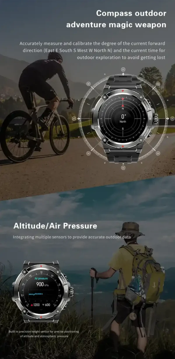 Heart rate detection, Blood oxygen test, blood pressure detection, Barometric altitude