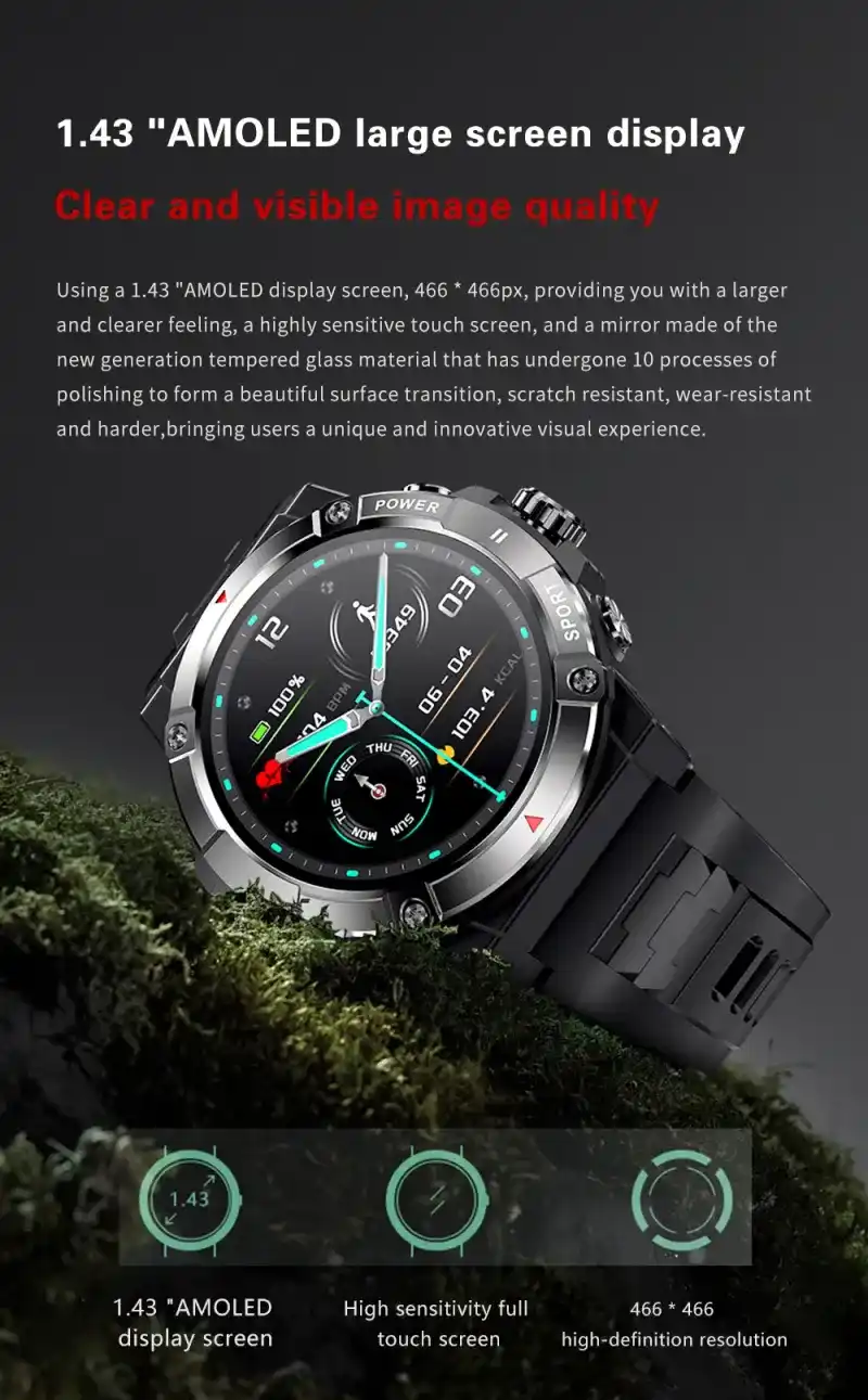 Screen: 1.43″ AMOLED screen, resolution: 466*466