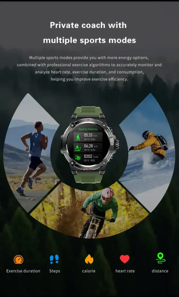 Multiple sport modes, Sleep detection (Sleep time ,Sleep quality)