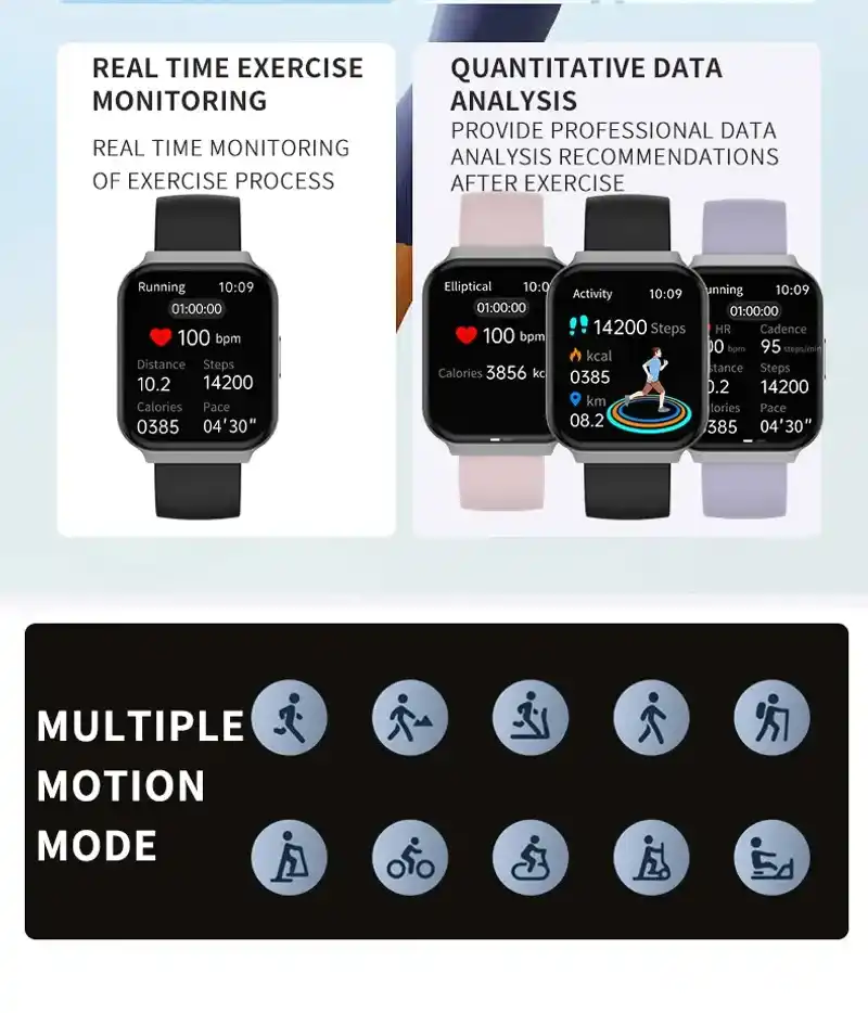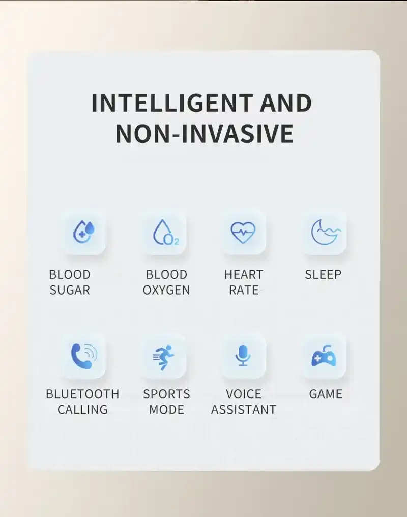 Bluetooth calling, Always-on Display,voice assistant, Bluetooth music, step counting, exercise distance, calorie consumption, heart rate detection, blood pressure detection,Blood Glucose Detection, blood oxygen detection, weather forecast, multi exercise mode, Scientific Sleep Monitoring,message reminder, sleep detection,HRV, stopwatch, timer, alarm clock, respiratory training, finding phone, sedentary reminder, smart alarm clock, female physiological reminder, etc