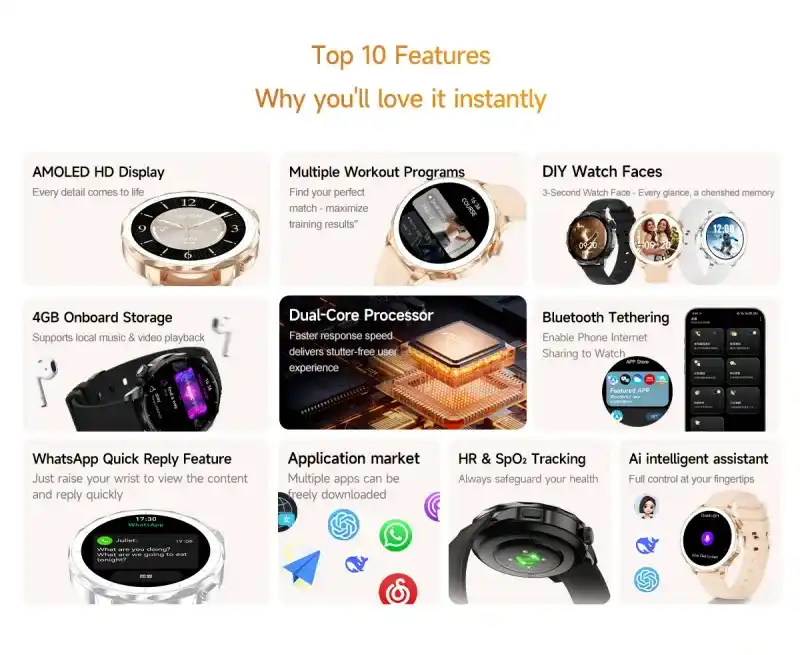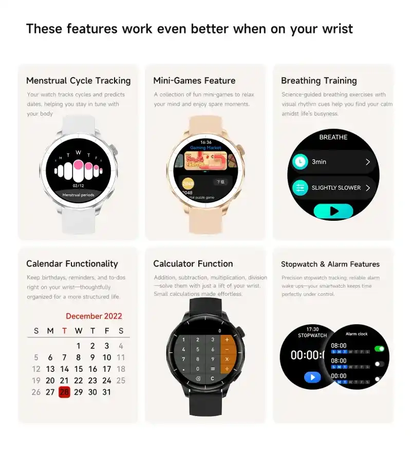 Daily Convenience: Raise the wrist to light the screen, alarm clock reminder, remote control photo, find the phone